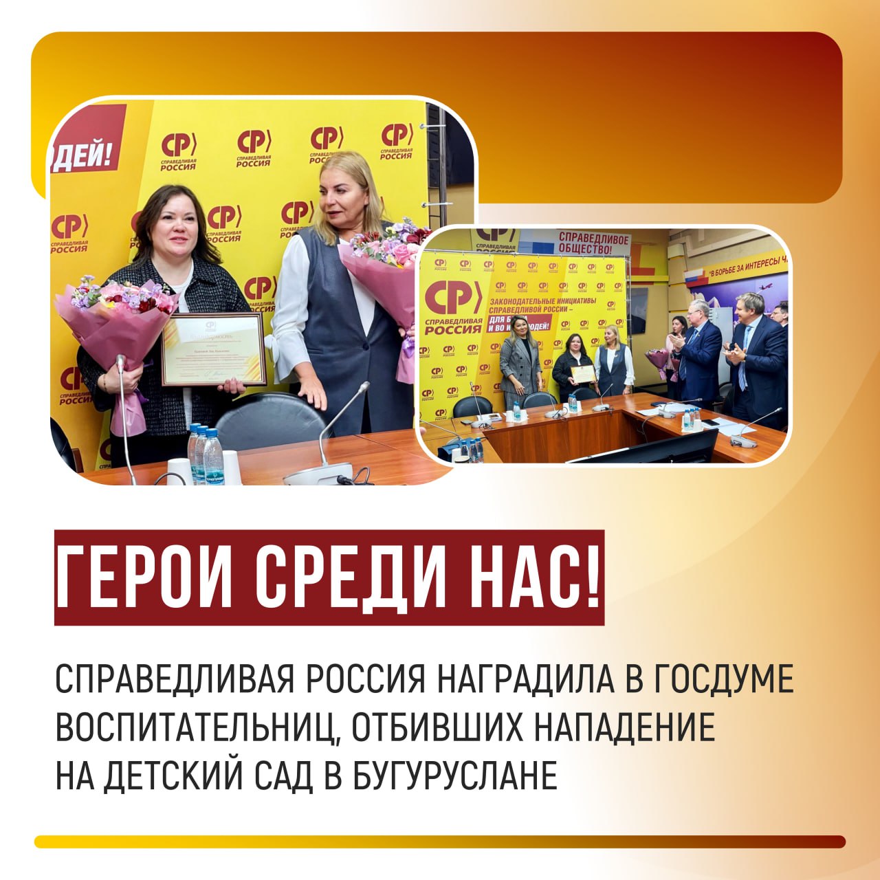 СПРАВЕДЛИВАЯ РОССИЯ наградила воспитательниц, отбивших нападение на детсад