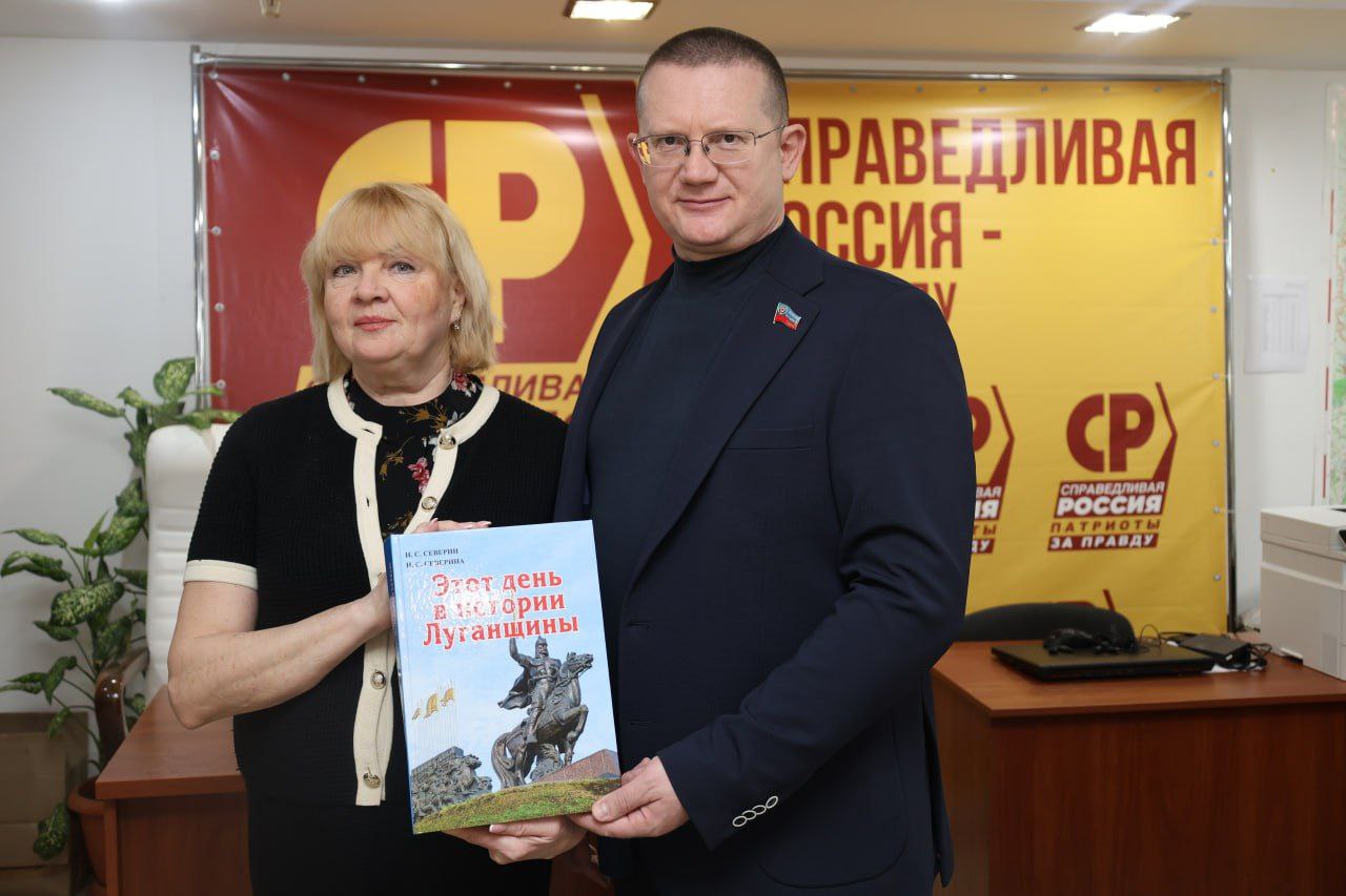 Наталья Сергеевна Северина подарила Руководителю фракции СПРАВЕДЛИВАЯ РОССИЯ в Народном Совете ЛНР Геннадию Тараканову историческую книгу