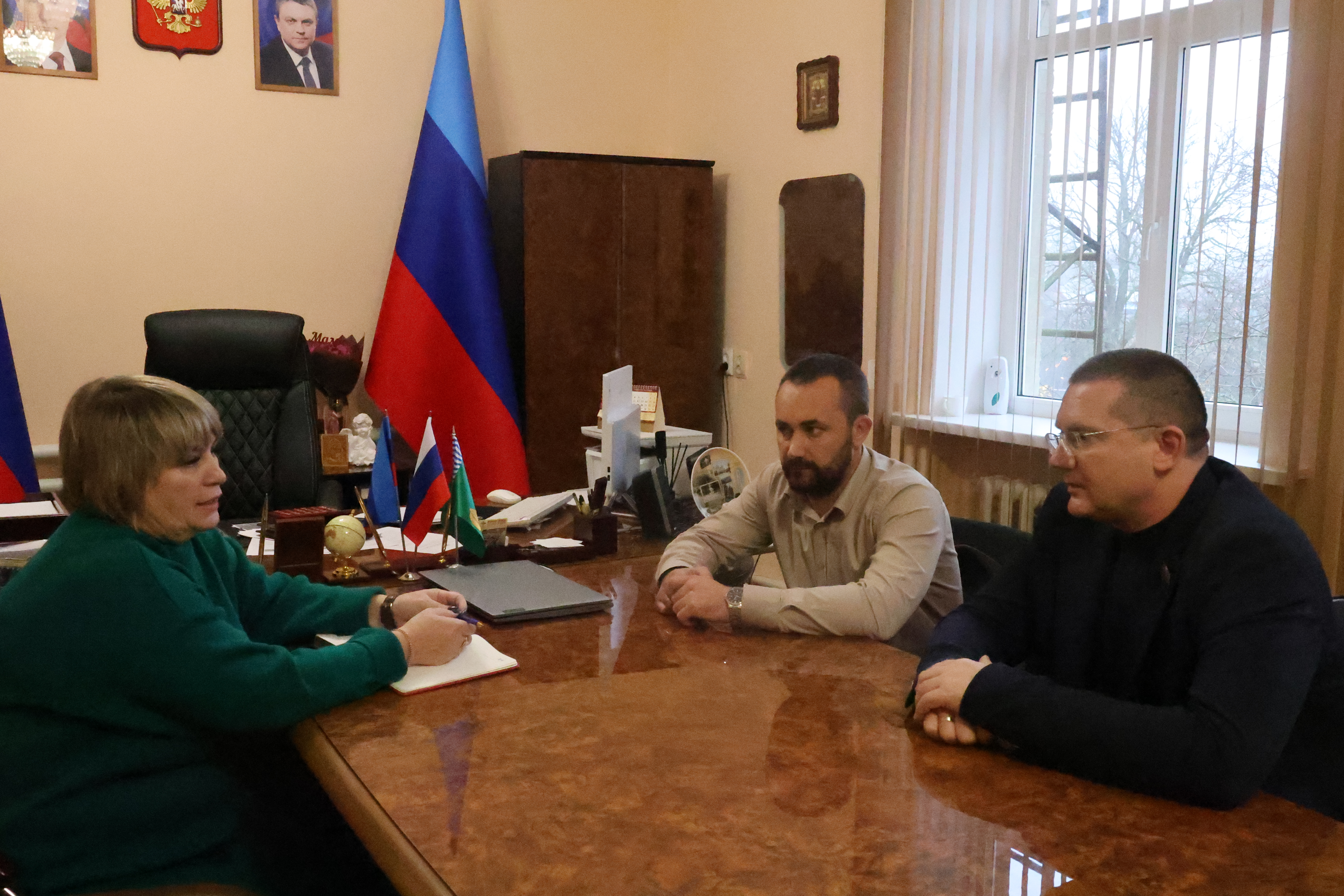В рамках выездного приема граждан депутат Народного Совета ЛНР Геннадий Тараканов провел встречу с Главой округа Ольгой Кудрявой, Председателем Совета Юрием Пащук.