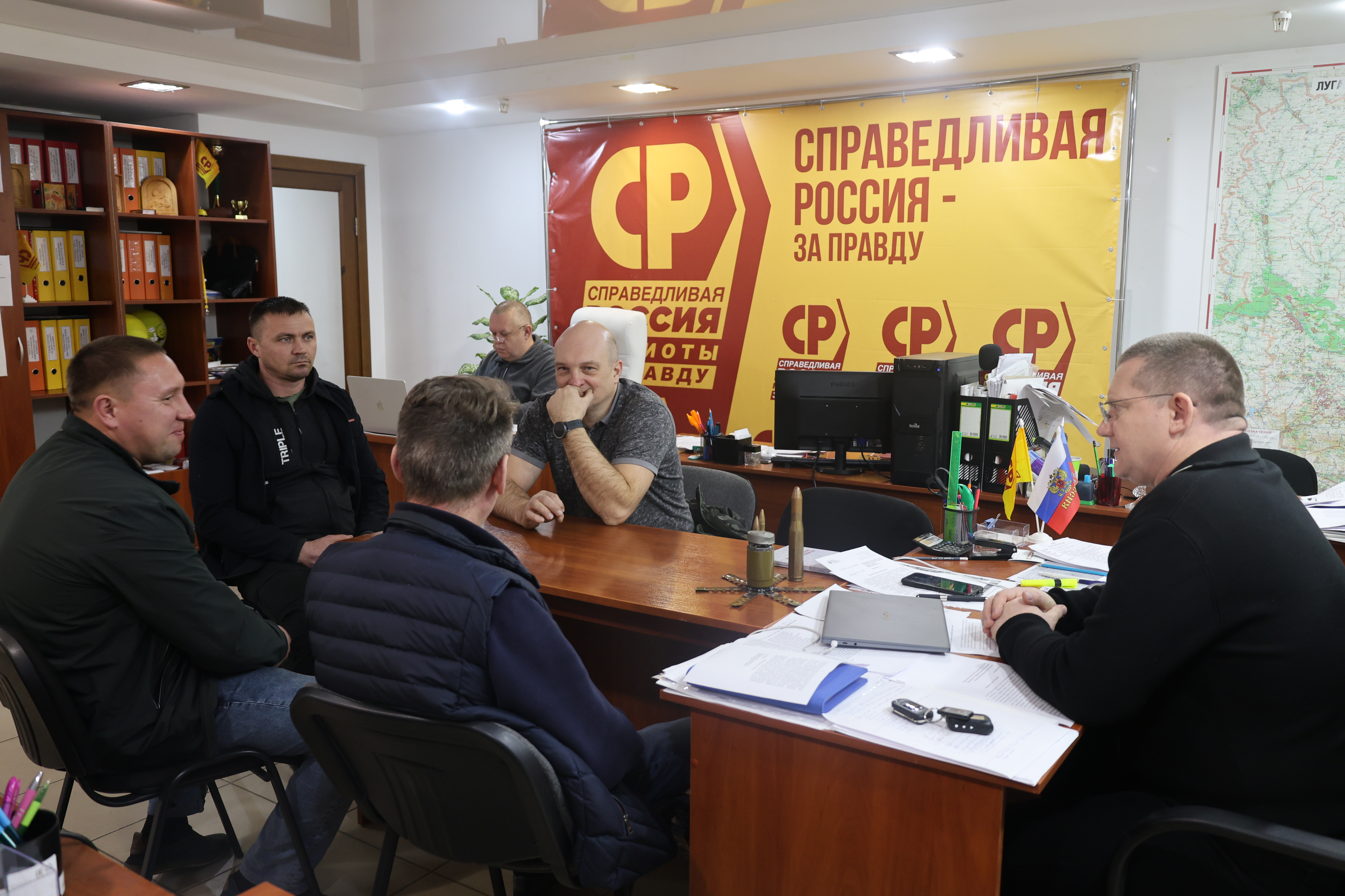 в Народном Совете ЛНР Геннадия Тараканова с однопартийцами из города Серпухово Московской области в партийном офисе.