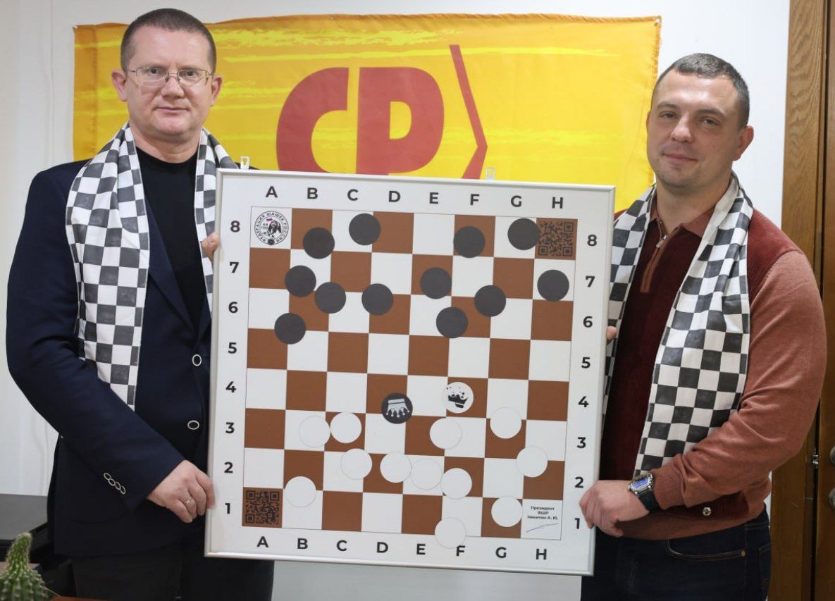 Вручая большую магнитную доску с прикрепленными шашечными фигурками, Александр Николаев на словах передал пожелание президента "Федерации шашек России":
