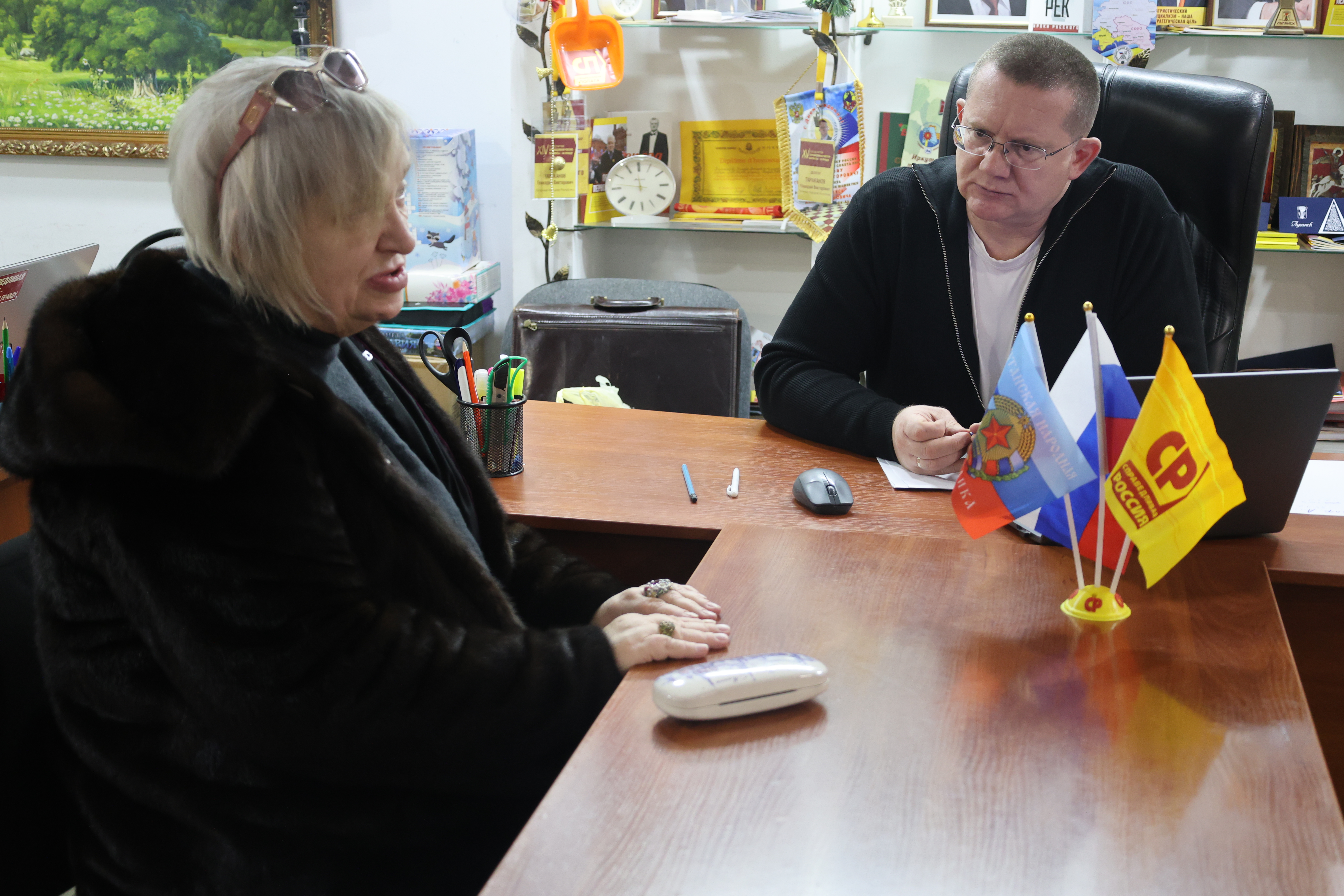 Новый 2026 год для Руководителя фракции СПРАВЕДЛИВАЯ РОССИЯ в Народном Совете ЛНР Геннадия Тараканова щедр на добрые встречи. В канун Рождества Христова Геннадий Викторович пообщался с Генеральным директором старейшего книжного магазина Республики "Глобус" Еленой Павловной Невдахиной-Ридзанич. Елена Павловна пришла с новогодними гостинцами. Подарила настенные календари на 2026 год с добрыми пожеланиями и конечно угостила символом новогодних празднеств – мандаринами.