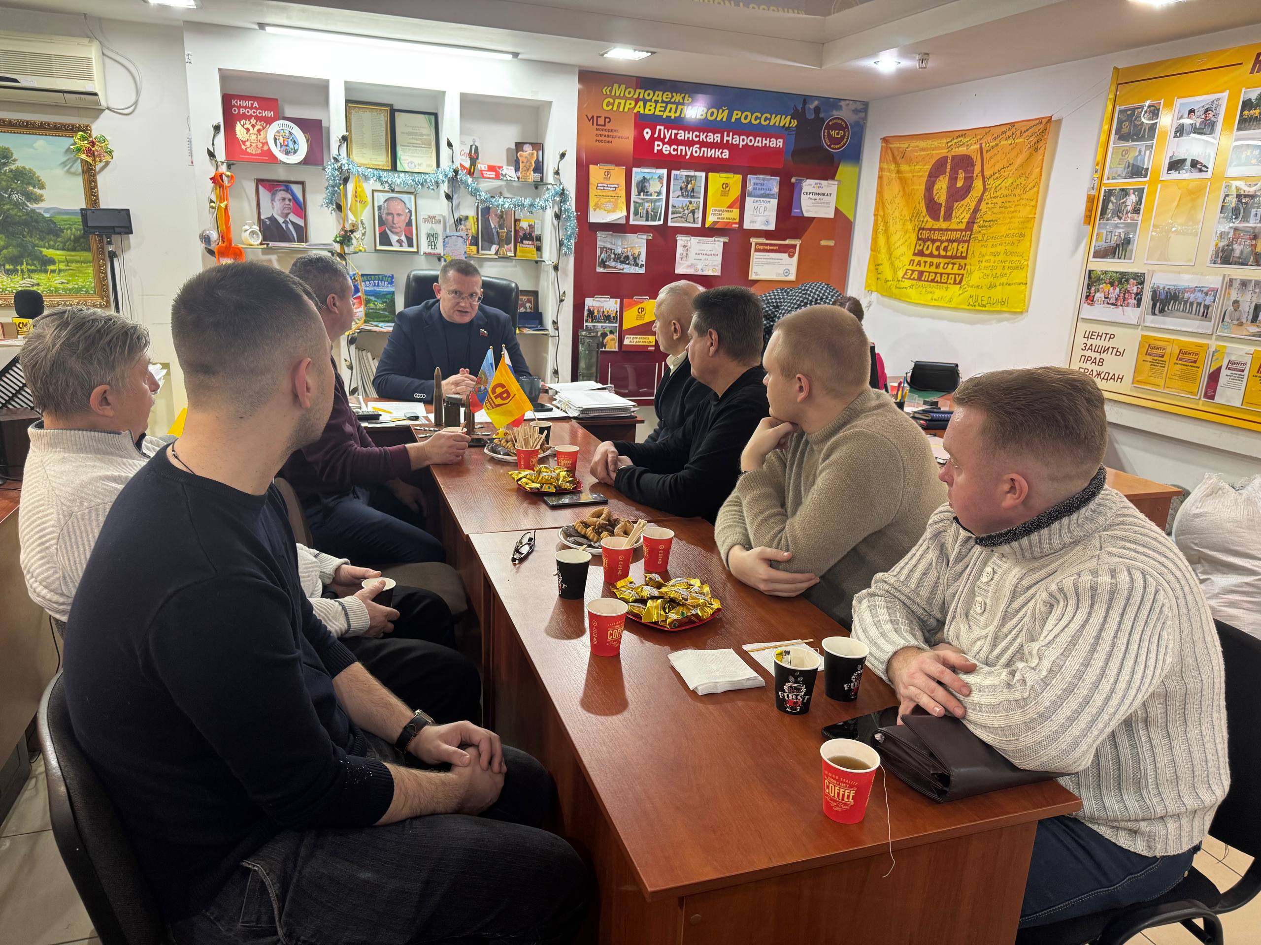 На очередное чаепитие Руководитель фракции "СПРАВЕДЛИВАЯ РОССИЯ" в Народном Совете ЛНР Геннадий Тараканов собрал справедливороссов обсудить ряд актуальных направлений работы