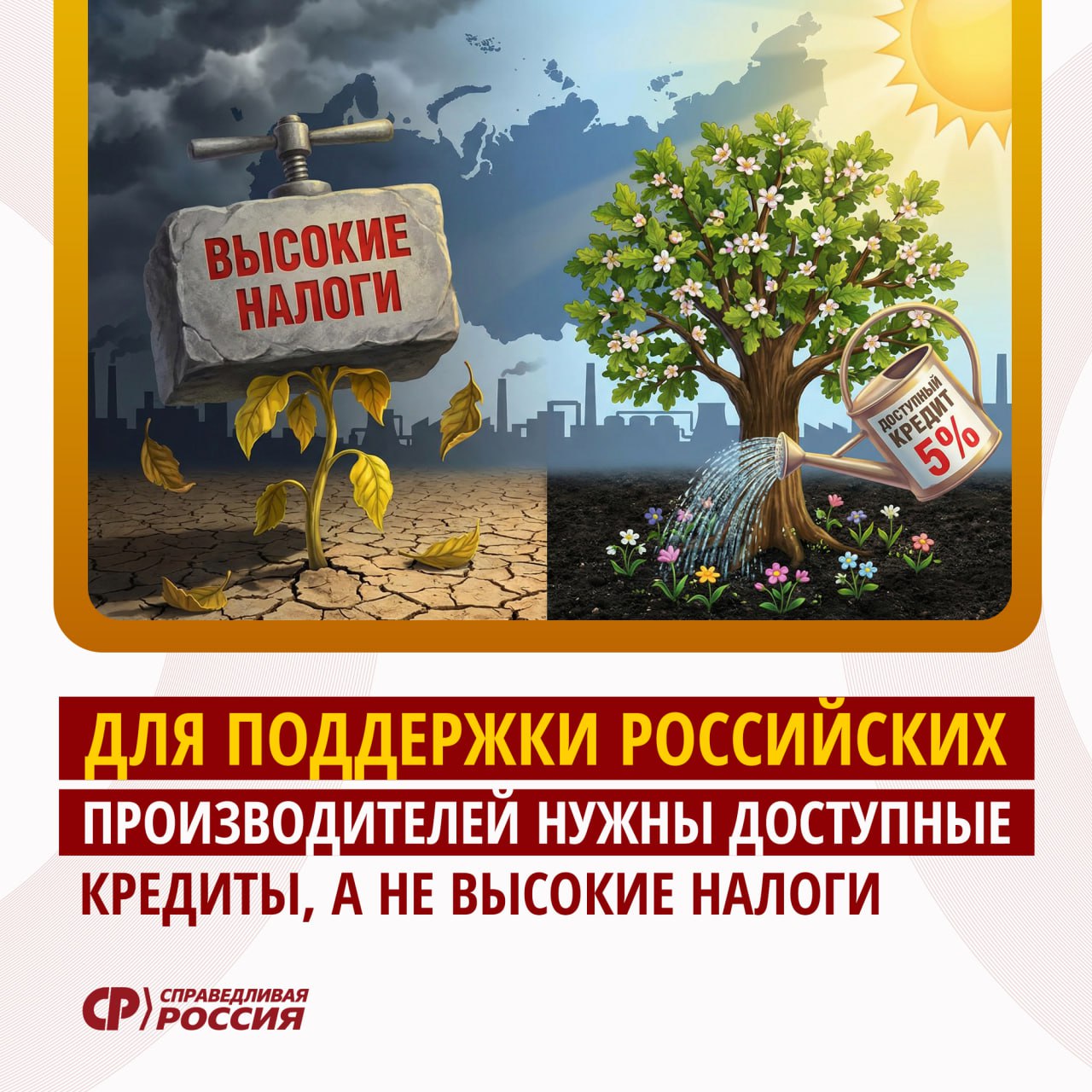 Лидер СПРАВЕДЛИВОЙ РОССИИ Сергей Миронов (https://t.me/mironovonline) уверен: для поддержки российских производителей нужны доступные кредиты, а не высокие налоги.