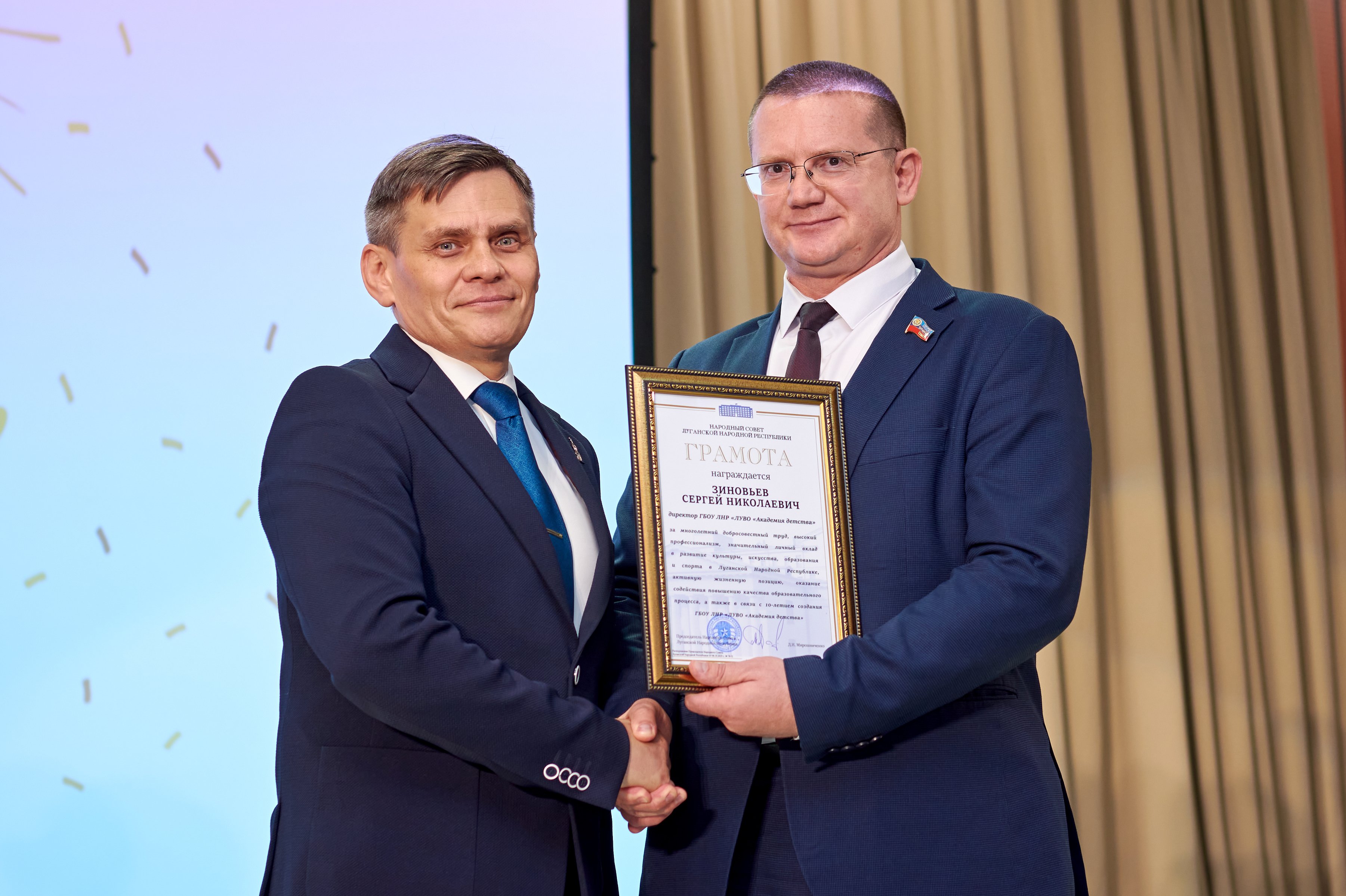 Особой гордостью для меня стало признание моего труда на самом высоком уровне. Депутат Народного Совета Луганской Народной Республики Геннадий Викторович Тараканов вручил мне грамоту Народного Совета ЛНР